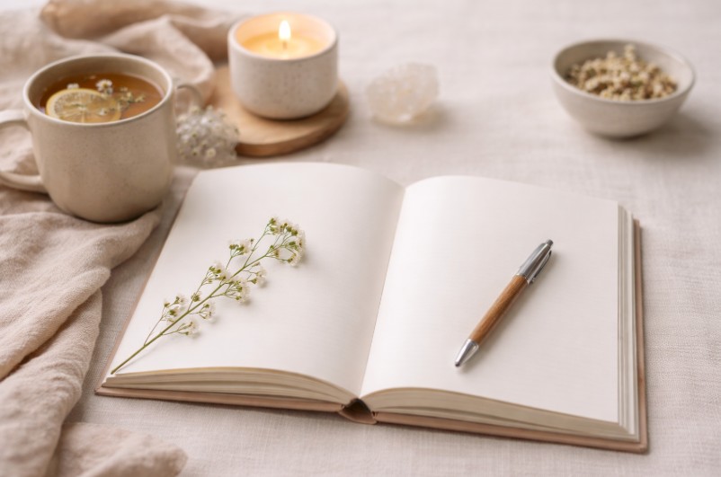 Inside The Inner Shift Journal 30 days of simple, calming prompts. Each page offers one focused question designed to slow your mind, soften your body, and interrupt emotional looping — without overwhelm.